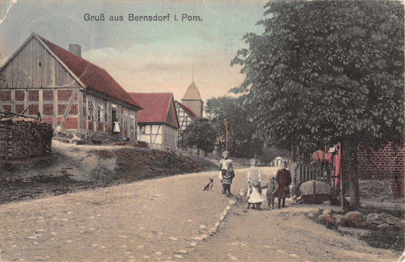 Im Jahr 1855 wurden in Bernsdorf 755 Einwohner gezählt, die auf 160 Familien verteilt waren. Um diese Zeit sprachen in dem Ort nur einige alte Leute kaschubisch.